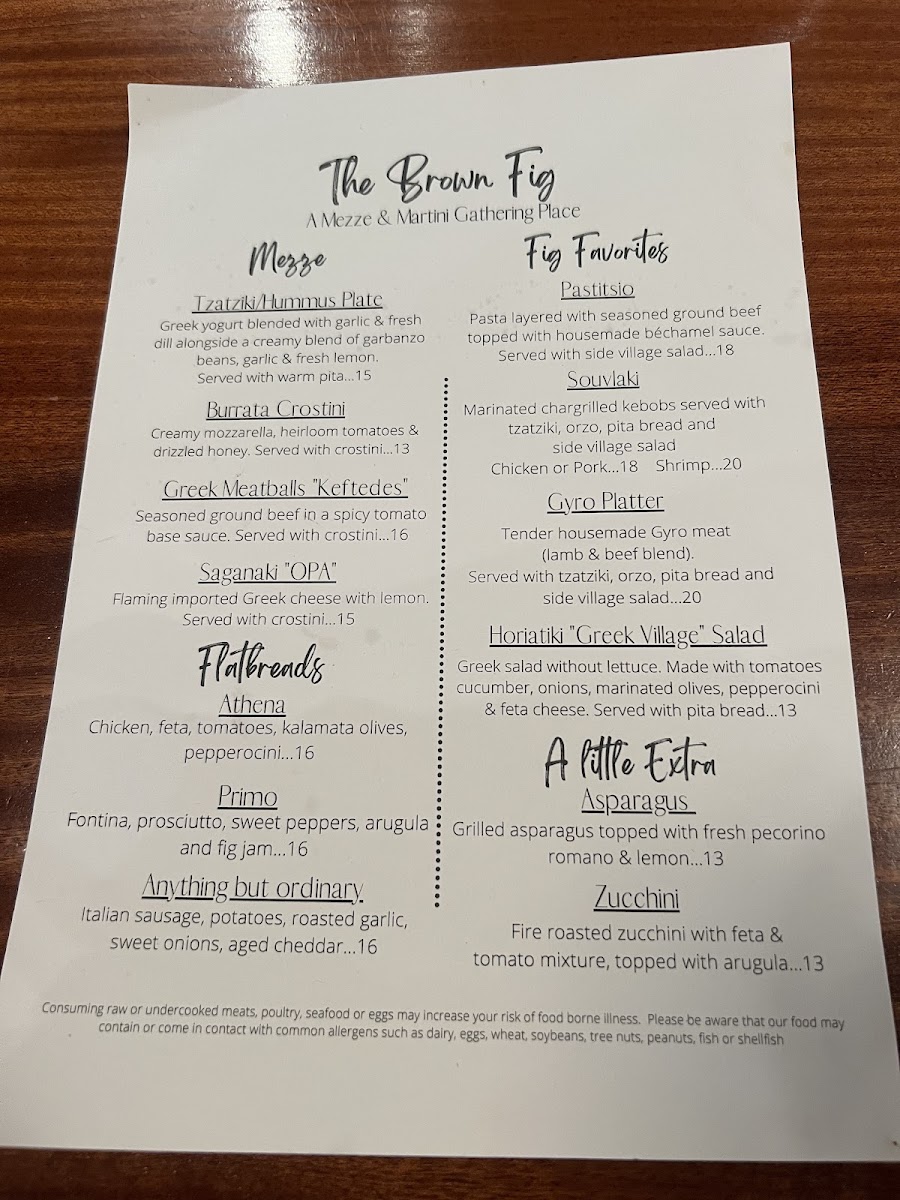 The Brown Fig Menu